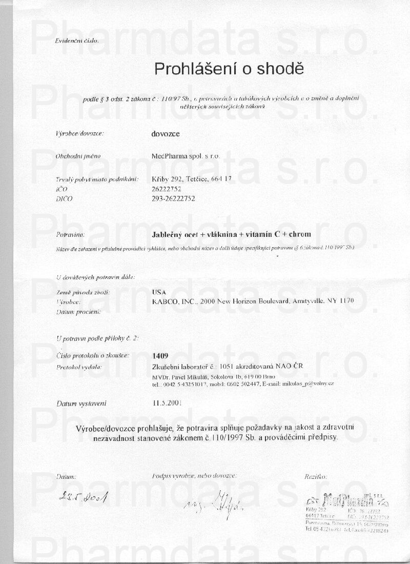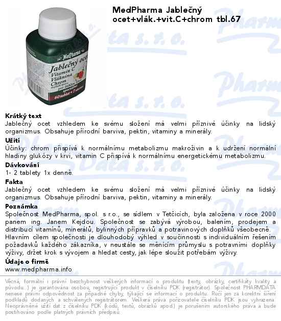 MedPharma Jablečný ocet+vlák.+vit.C+chrom tbl.67