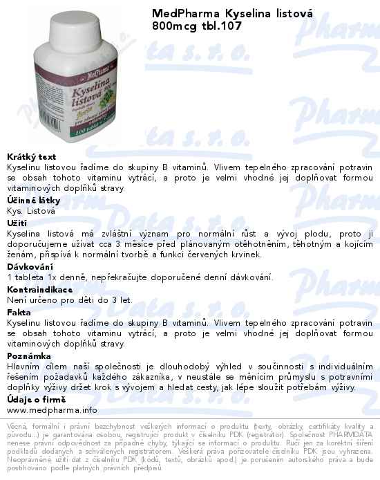 MedPharma Kyselina listová 800mcg tbl.107