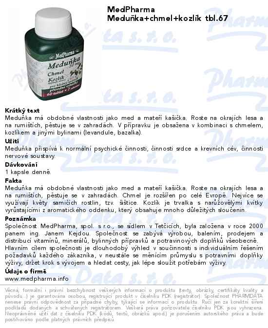 MedPharma Meduňka+chmel+kozlík tbl.67