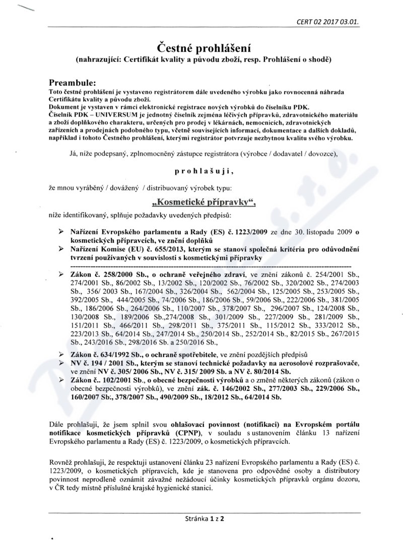 2 strany čestného prohlášení: strana 1, strana 2,