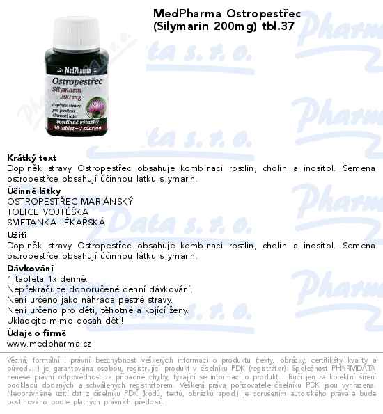 MedPharma Ostropestřec (Silymarin 200mg) tbl.37