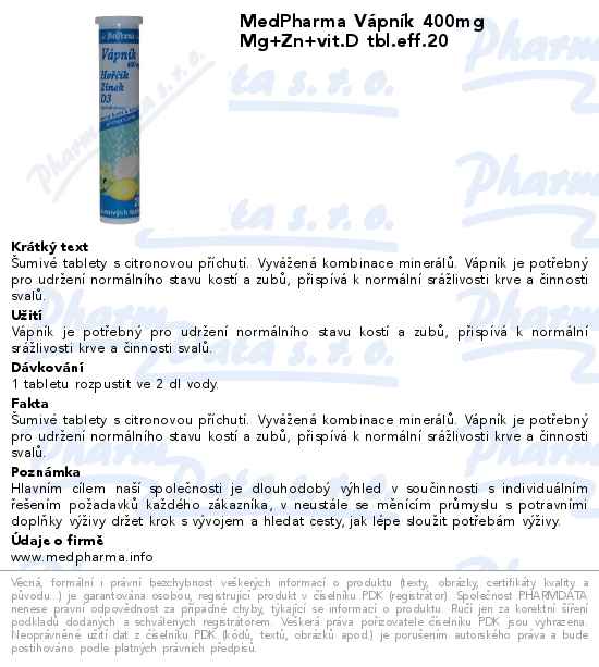 MedPharma Vápník 400mg Mg+Zn+vit.D tbl.eff.20