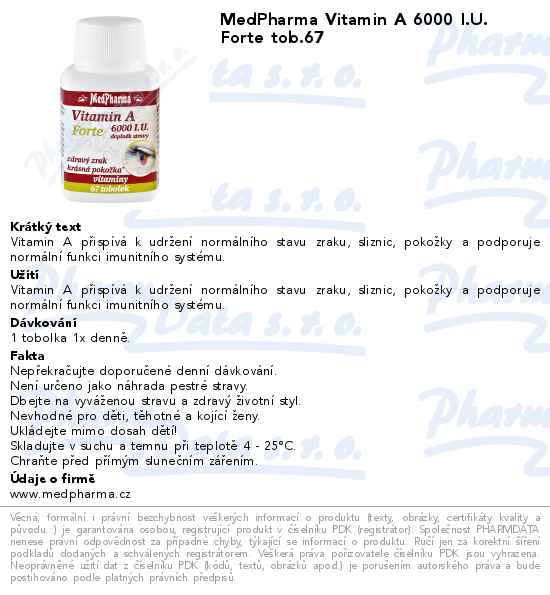 MedPharma Vitamin A 6000 I.U. Forte tob.67