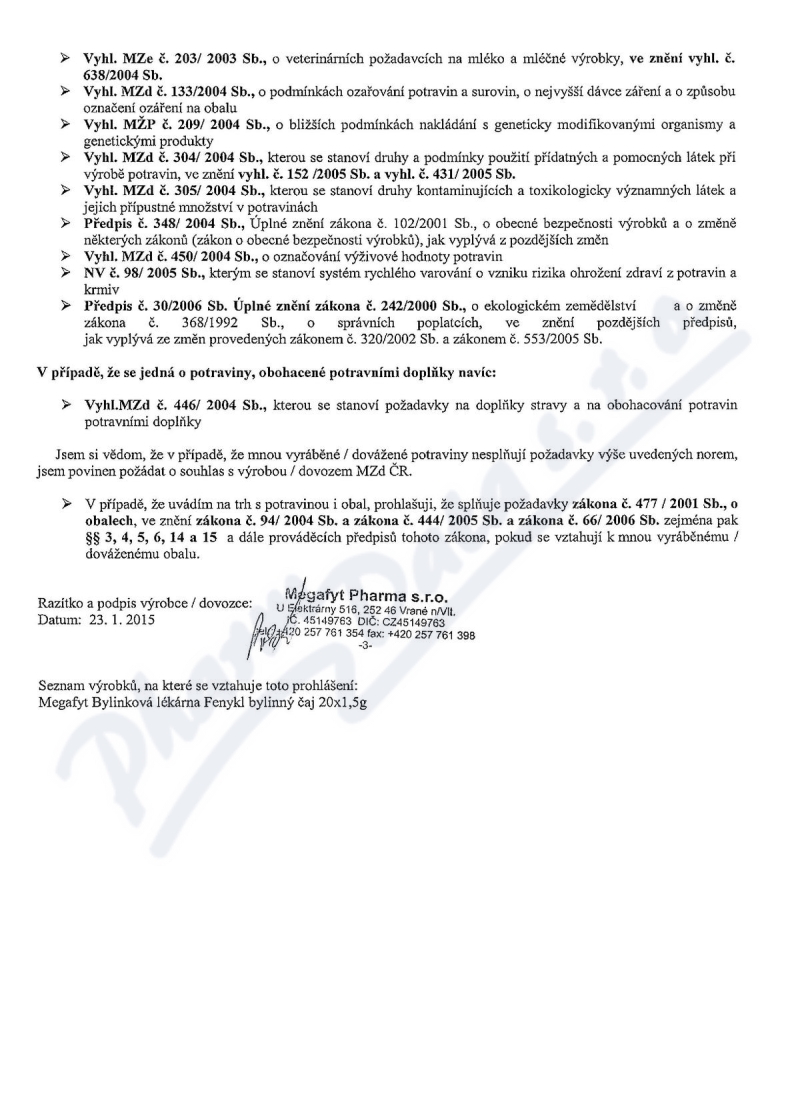 Výrobce: MEGAFYT PHARMA S.R.O. , VRANÉ NAD VLTAVOU