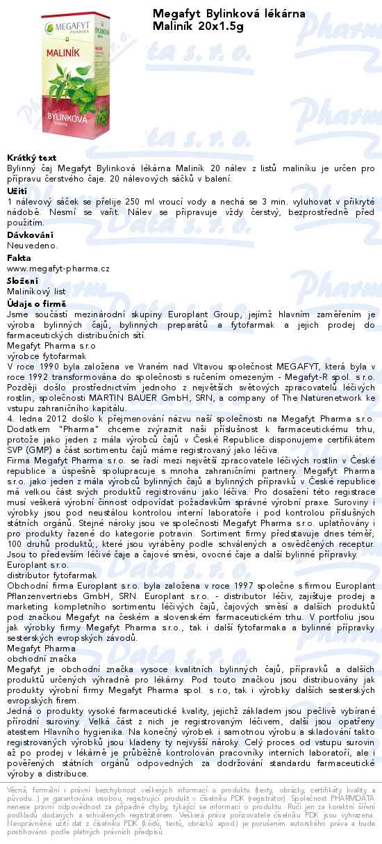 Výrobce: MEGAFYT PHARMA S.R.O. , VRANÉ NAD VLTAVOU