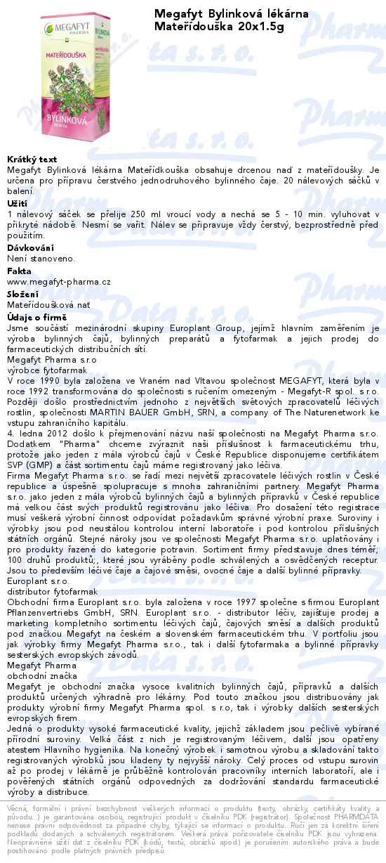Výrobce: MEGAFYT PHARMA S.R.O. , VRANÉ NAD VLTAVOU