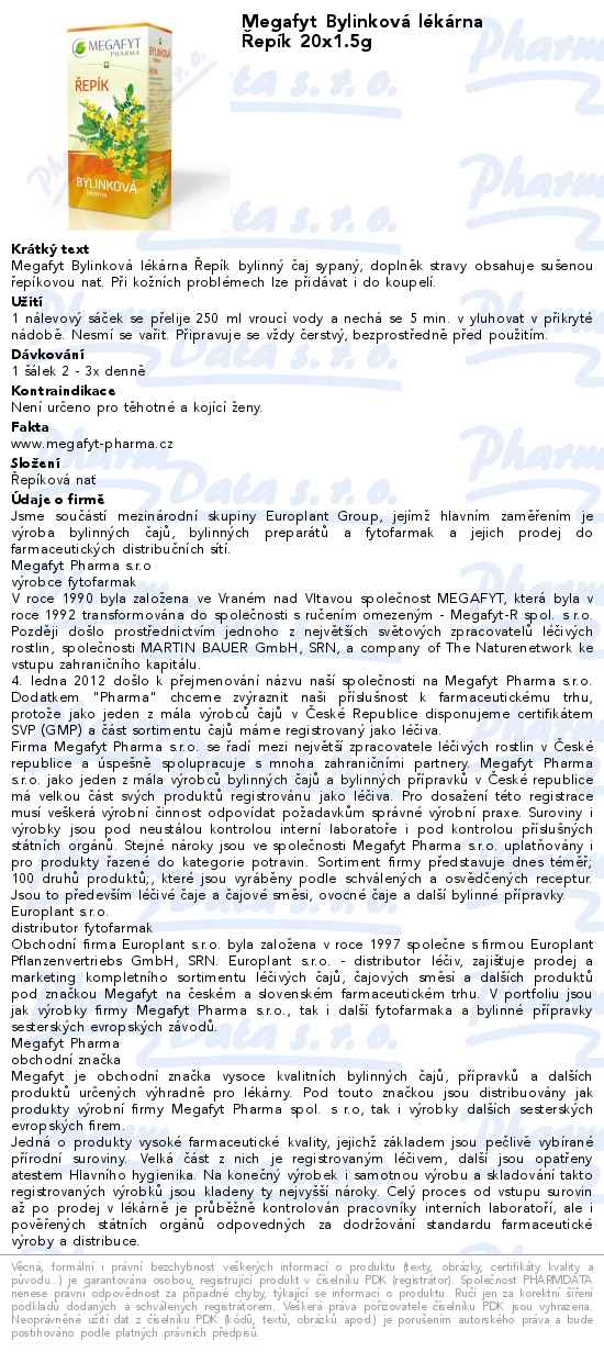Výrobce: MEGAFYT PHARMA S.R.O. , VRANÉ NAD VLTAVOU