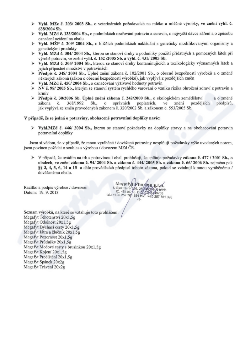 Výrobce: MEGAFYT PHARMA S.R.O. , VRANÉ NAD VLTAVOU