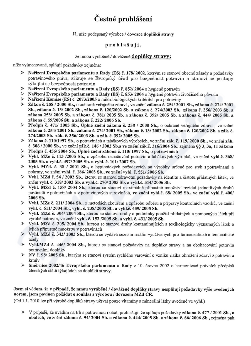 2 strany čestného prohlášení: strana 1, strana 2,