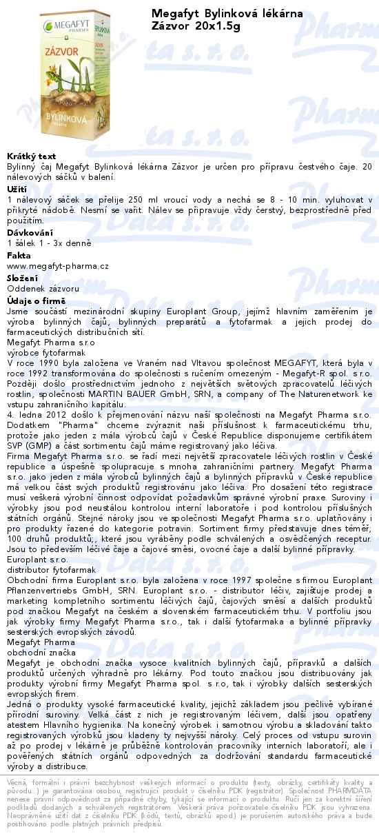 Výrobce: MEGAFYT PHARMA S.R.O. , VRANÉ NAD VLTAVOU