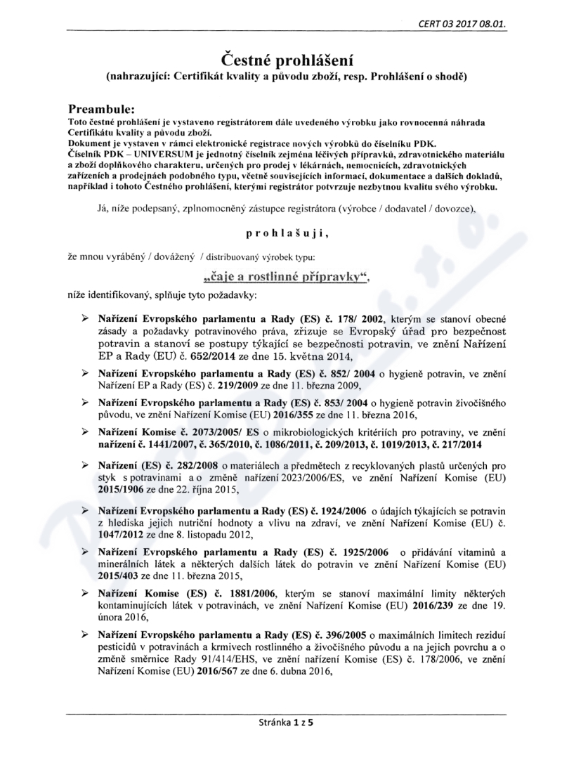 5 strany čestného prohlášení: strana 1, strana 2, strana 3, strana 4, strana 5,