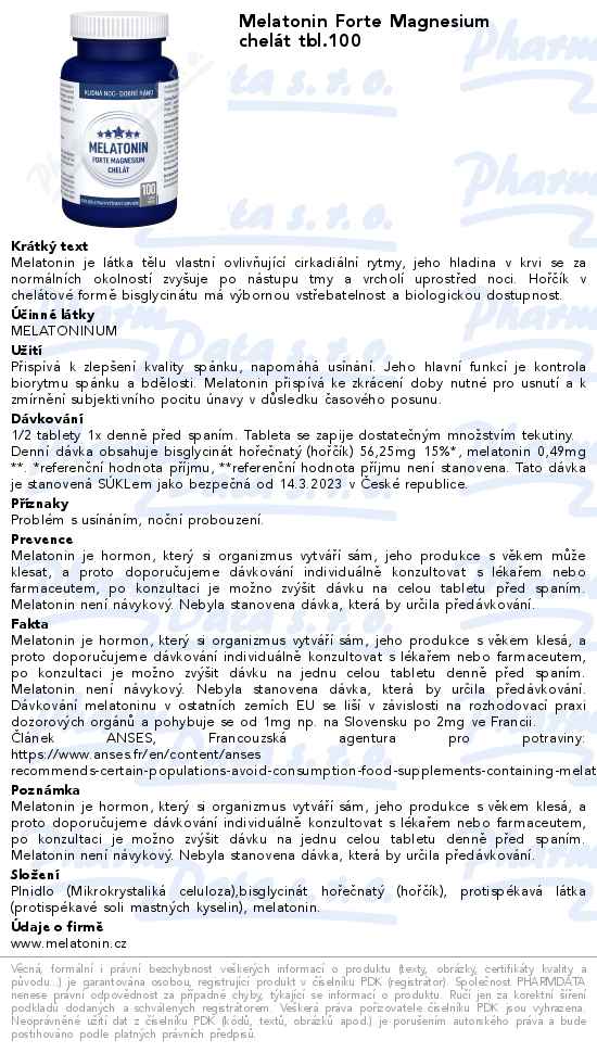 Melatonin Forte Magnesium chelát tbl.100