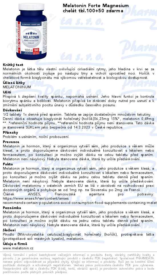 Melatonin Forte Magnesium chelát tbl.100+50 zdarma