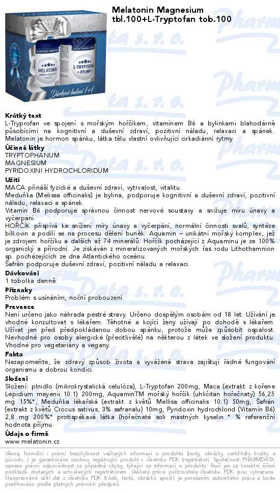 Melatonin Magnesium tbl.100+L-Tryptofan tob.100