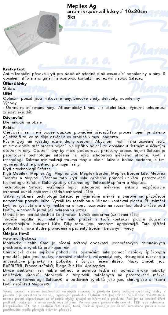 Mepilex Ag antimikr.pěn.silik.krytí 10x20cm 5ks