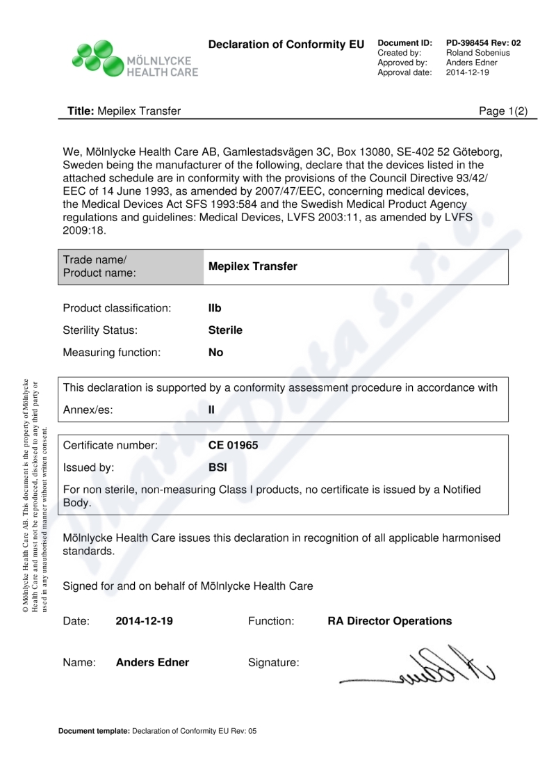 Výrobce: MOLNLYCKE HEALTHCARE AB
