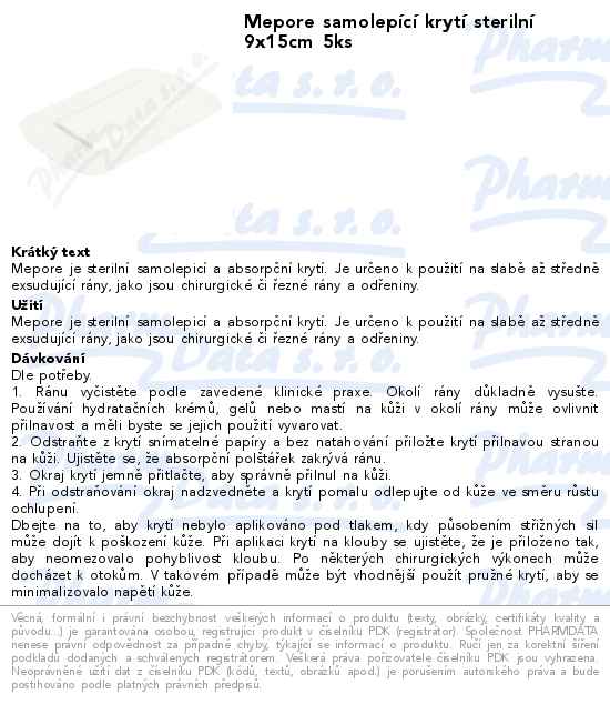 Mepore samolepící krytí sterilní 9x15cm 5ks