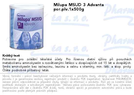 Milupa MSUD 3 Advanta por.plv.1x500g