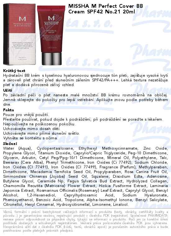 MISSHA M Perfect Cover BB Cream SPF42 No.21 20ml