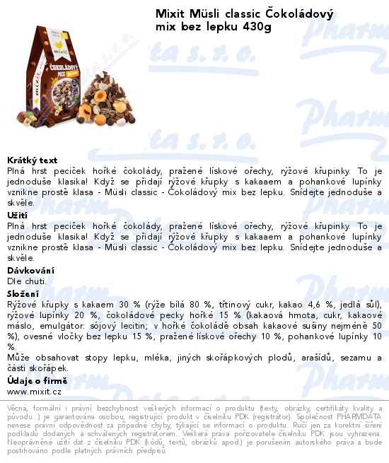 Mixit Müsli classic Čokoládový mix bez lepku 430g