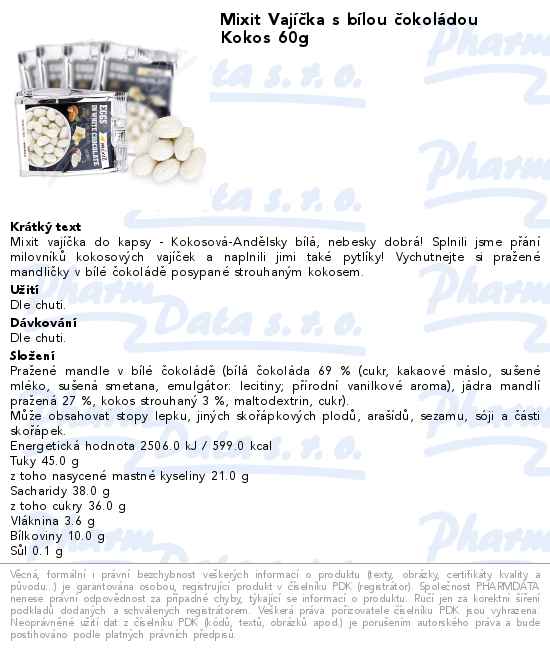 Mixit Vajíčka s bílou čokoládou Kokos 60g