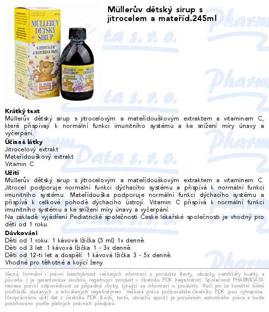 Müllerův dětský sirup s jitrocelem a mateříd.245ml