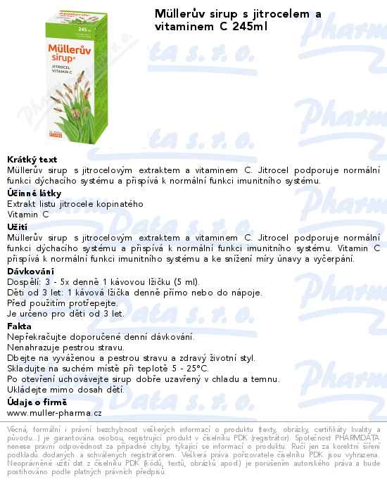 Müllerův sirup s jitrocelem a vitaminem C 245ml