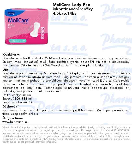MoliCare Lady Pad inkontinenční vložky 4.5kap.14ks