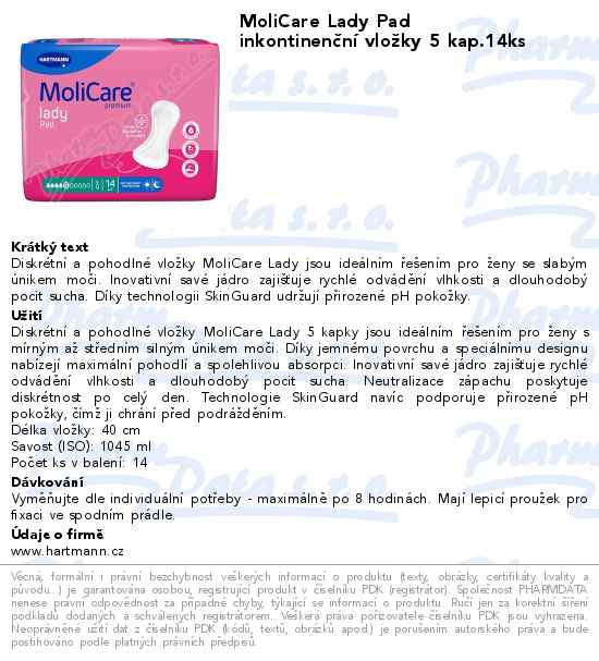 MoliCare Lady Pad inkontinenční vložky 5 kap.14ks