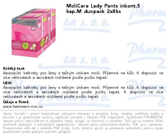 MoliCare Lady Pants inkont.5 kap.M duopack 2x8ks