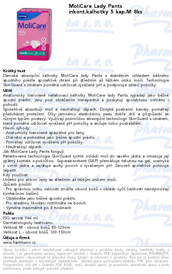 MoliCare Lady Pants inkont.kalhotky 5 kap.M 8ks