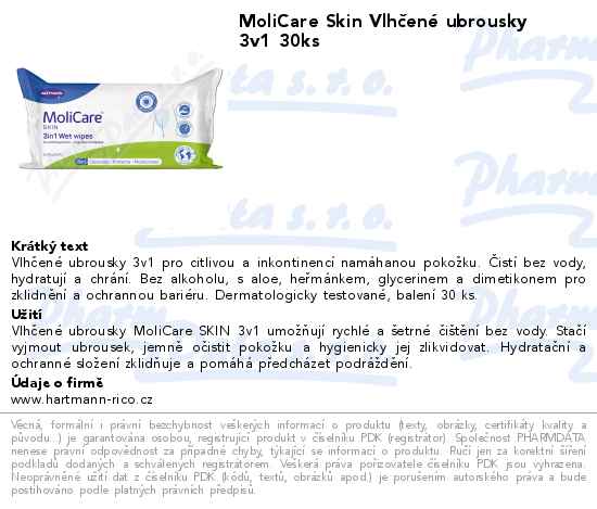 MoliCare Skin Vlhčené ubrousky 3v1 30ks