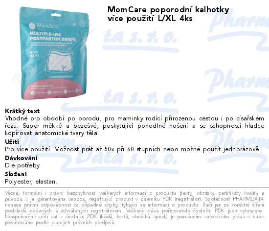 MomCare poporodní kalhotky více použití L/XL 4ks