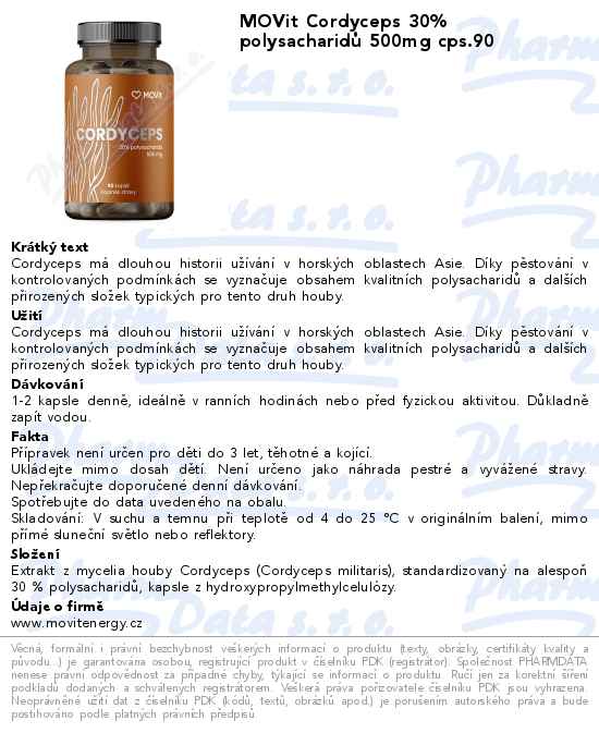 MOVit Cordyceps 30% polysacharidů 500mg cps.90