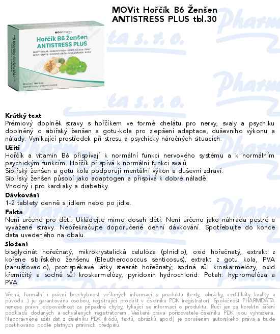 MOVit Hořčík B6 Ženšen ANTISTRESS PLUS tbl.30