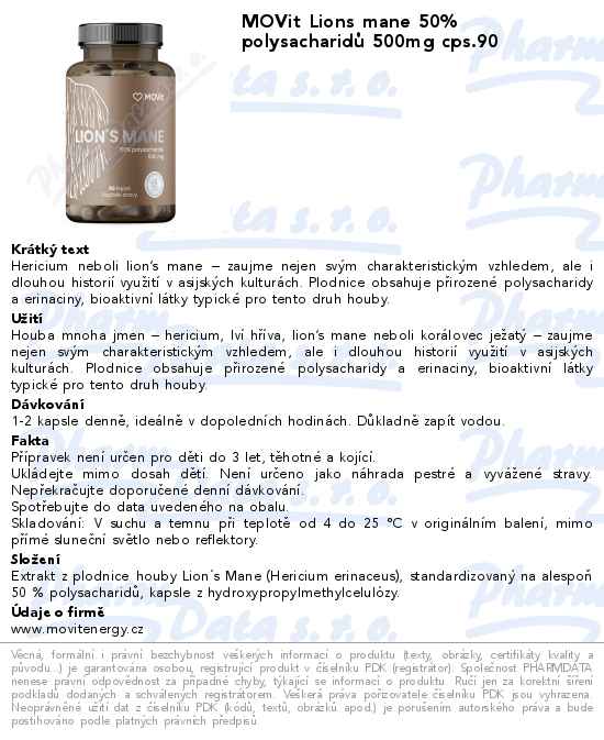 MOVit Lions mane 50% polysacharidů 500mg cps.90