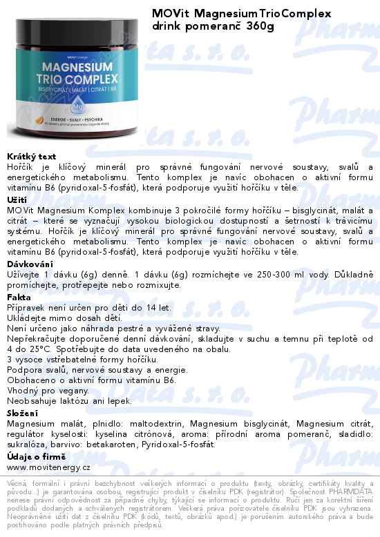 MOVit MagnesiumTrioComplex drink pomeranč 360g