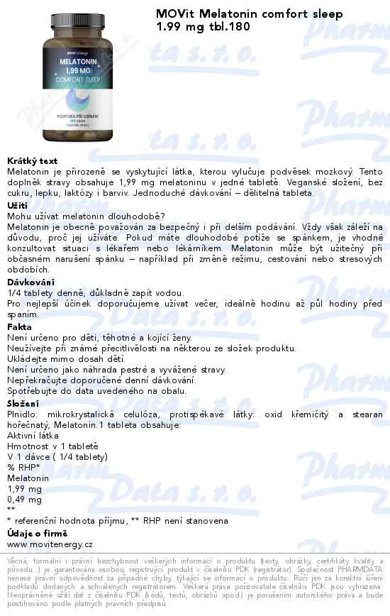 MOVit Melatonin comfort sleep 1.99 mg tbl.180