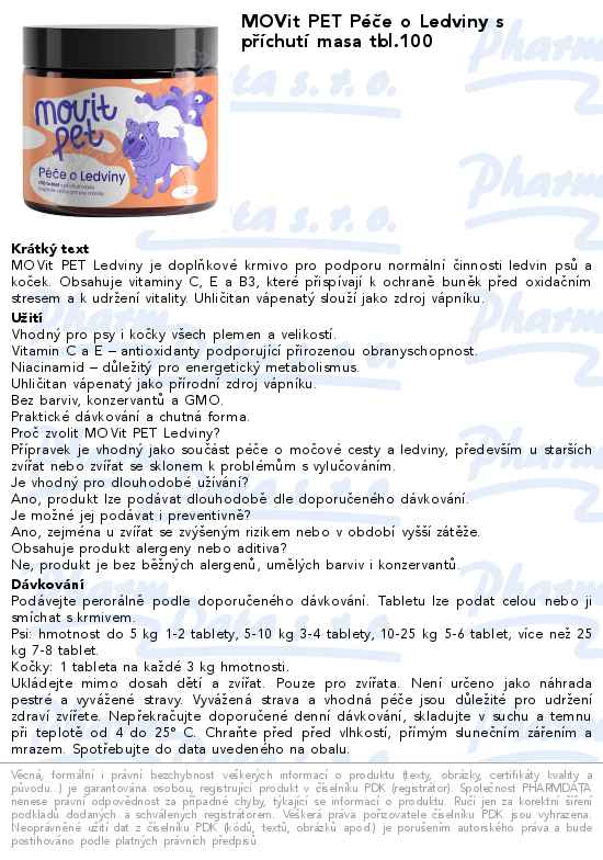 MOVit PET Péče o Ledviny s příchutí masa tbl.100