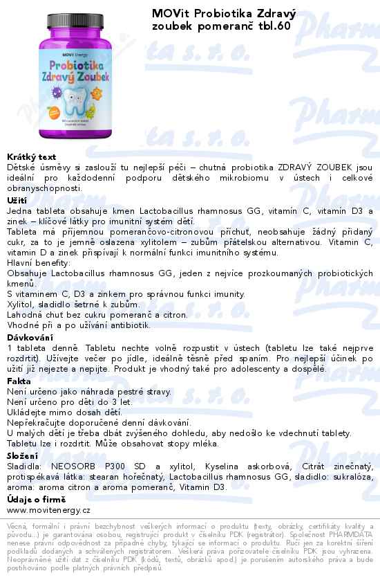MOVit Probiotika Zdravý zoubek pomeranč tbl.60