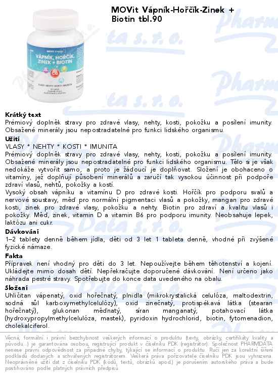 MOVit Vápník-Hořčík-Zinek + Biotin tbl.90