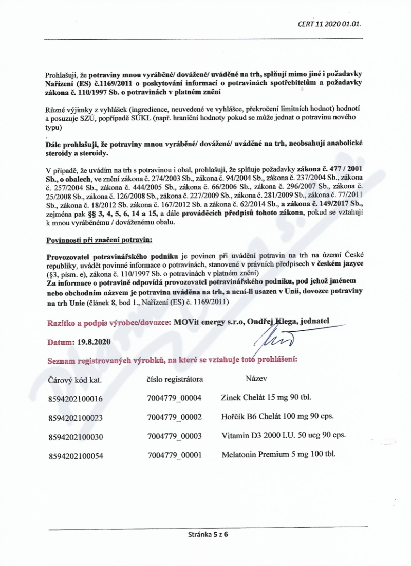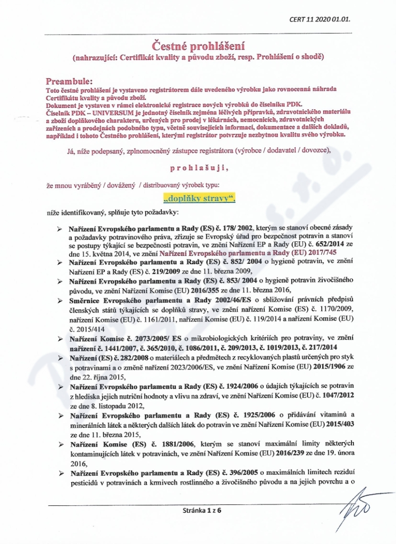 6 strany čestného prohlášení: strana 1, strana 2, strana 3, strana 4, strana 5, strana 6,