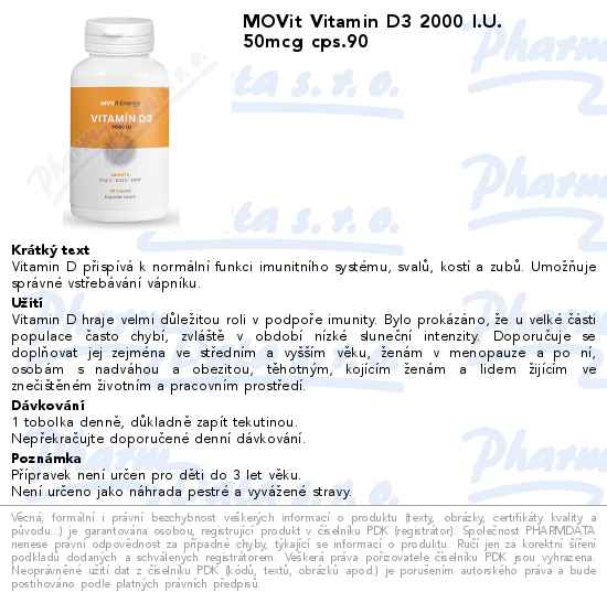 MOVit Vitamin D3 2000 I.U. 50mcg cps.90