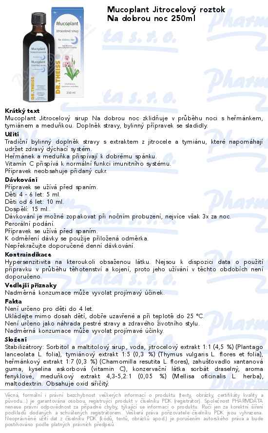Mucoplant Jitrocelový roztok Na dobrou noc 250ml