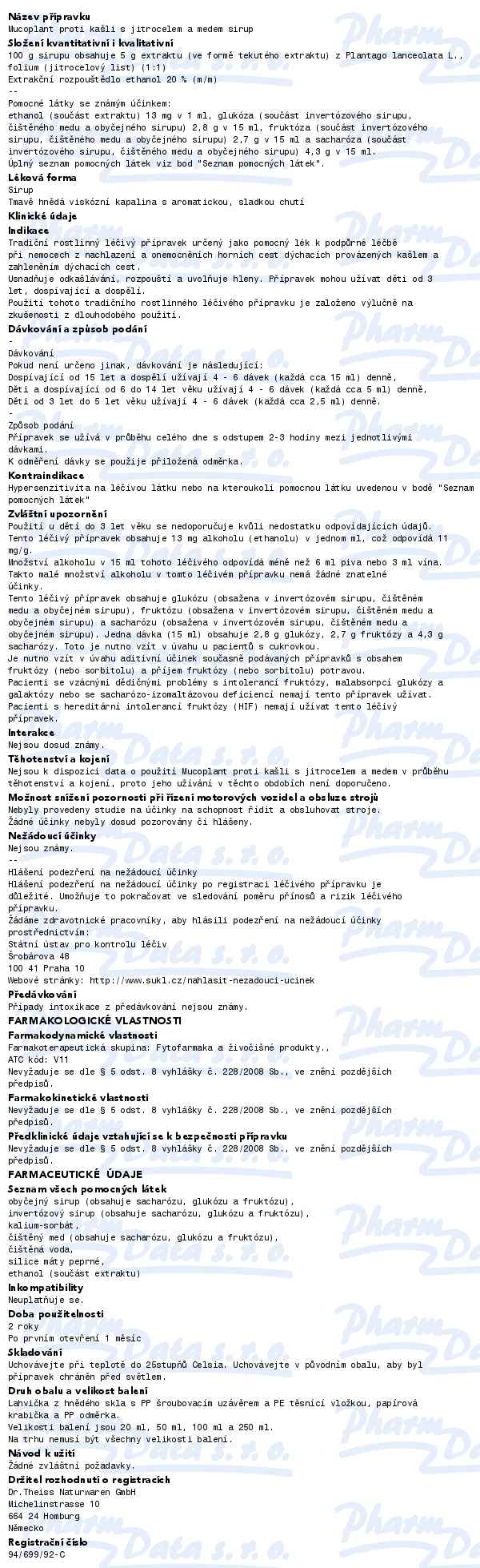 Mucoplant proti kašli s jitrocel.a medem sir.250ml