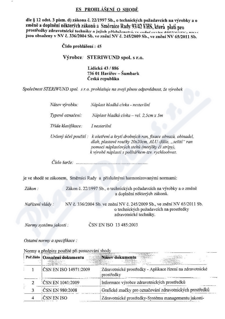 2 strany prohlášení o shodě: strana 1, strana 2,