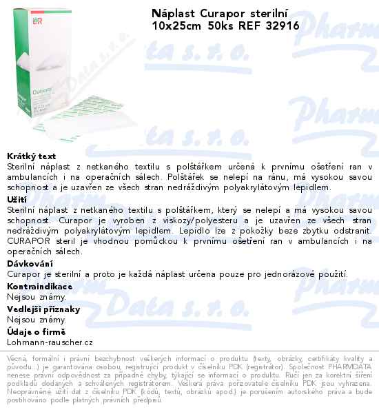 Náplast Curapor sterilní 10x25cm 50ks REF 32916
