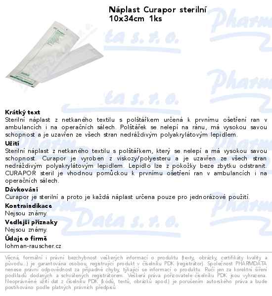 Náplast Curapor sterilní 10x34cm 1ks