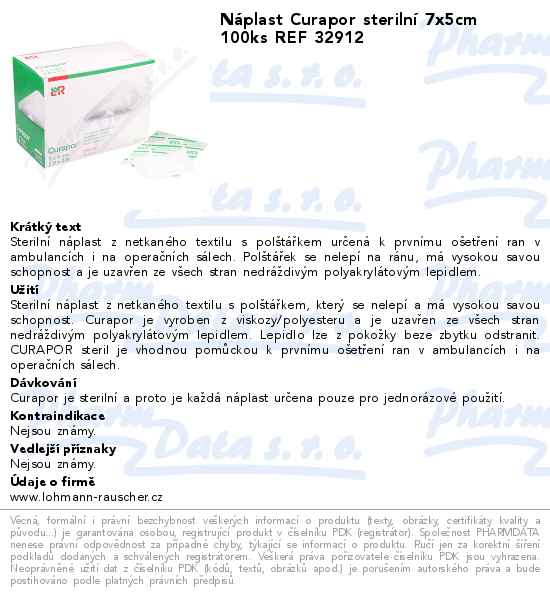 Náplast Curapor sterilní 7x5cm 100ks REF 32912
