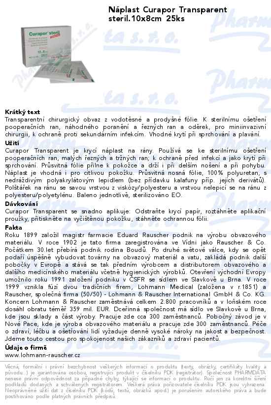 Náplast Curapor Transparent steril.10x8cm 25ks